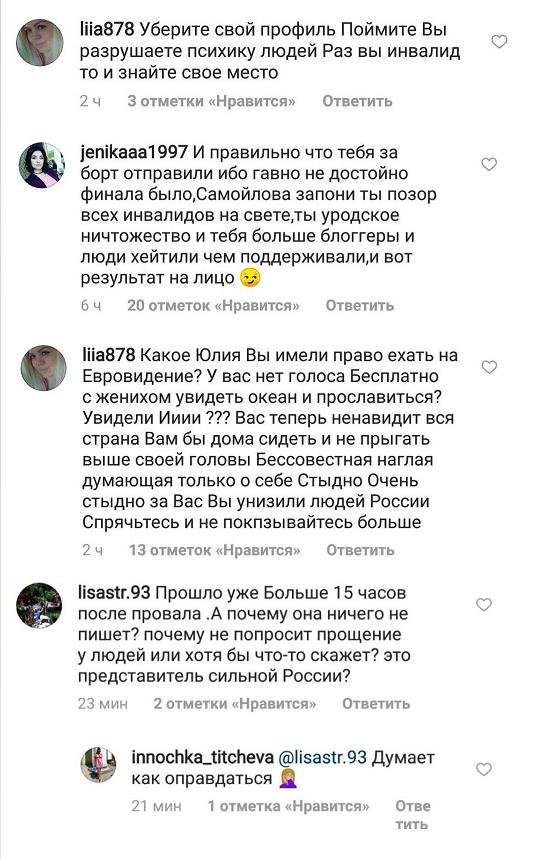Юлия Самойлова не прошла в финал песенного конкурса Евровидение. Впервые с 2004 года Россия полностью провалила участие в конкурсе. Реакция духовноскрепных умиляет. Такой поддержки лично я не ожидал! Россияне переживают вместе с Юлей. Смотрите, какие замечательные слова поддержки присылают:
